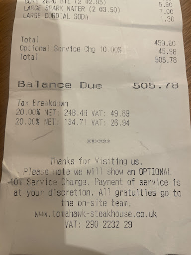 Read moreI contacted the restaurant via email on 13th July requesting a table for eight on Saturday 23rd July at 7:30pm. I received a prompt reply stating that as it was a large party we would need to pre order, which we did on the 18th July. Four of us arrived early at 7:10pm and were shown directly to our table, at 7:25pm I managed to get one of the server’s attention and asked if there was a possibility to order some drinks while we waited for the other guests to arrive, which she dully did and went to the bar with our order. As there were four bar staff, you would have presumed that the drinks would be served in a timely manner, not so. The other guests arrived at 7:30pm and we managed to get our first drinks at 7:45pm and had to wait a further 12 minutes to get the remaining drinks. Upon their arrival, I decided to order wine, two reds at £42.50 each and a white at £33.95 delivered to the table, the white was not even chilled or placed in a wine cooler. All this time customers were coming in been seated and served, in fact two tables of four had received their starters and mains, before our starters arrived at 8.25pm. At 9:05pm I asked when we could expect the main courses to be served to which the server could not answer so I requested to speak with the manager who when arrived could only apologise and offer more drinks. When challenged at what time we could expect our pre-ordered meals she said we were fourth in line, again I challenged what time would that be to which she advised me that it was the chiefs decision who got served next, talk about the tail wagging the dog. Eventually at 9:10, the meals arrived. I must point out that the food was good, especially the steaks but unfortunately the whole dining experience was let down by what appeared to be a very inexperienced staff who had no leadership and understanding of how the whole dining experience should have been. Not one smile appeared on any of the staffs faces during our visit. I would strongly suggest to Mr Howard Eggleston, Ms Victoria Warrior, Mr Thomas Sturman and Mr James King that before you start investing in more establishments that you invest some of that money in staff training and team building because it was poor at best. Alternatively go on a fact-finding trip to the USA to Bones Restaurant in Atlanta, Pappas Bros Steakhouse in Houston or Morton’s The Steakhouse in Houston there you will experience how a steakhouse should be managed. The total bill came to £505.78 however, what brought on the indigestion was the £45.98 service charge. It was paid in full, and I am not looking for a refund, but please remember for every good eating experience at least seven people will be told, but for a bad experience, seventy will get to hear about it, so using that equation I suggest that four hundred and ninety people may get to hear of our...