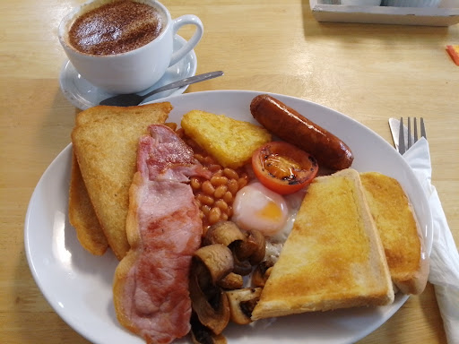 I've been meaning to go here for ages, as I've heard good things. It was pretty busy for a Tuesday morning and although there was only one lady serving she was excellent. Friendly and efficient. Lots of the locals clearly go here and she seemed to know them all. They allow dogs, although it's in a designated area at the back opposite the till and by the toilets, which wasn't great! Anyway, tried a small fry up. Pretty good value at £5.99 compared to other cafes but I can't say it was great. The mushrooms were dry and the (added) fried bread was a heal of the loaf. It bugs me when cafes do this. Ordered a cappuccino too, but sadly it was a latte. Way too milky. No foam. But that seems to be common in many places. People don't know how to make them. The coffee did taste nice though. Overall it was ok. Average food. Little bit of a strange place, weird mix of decor etc, but I did like the subtle background music and the service from the lady there was excellent. **They offer a create your own breakfast, which is rare and a good...