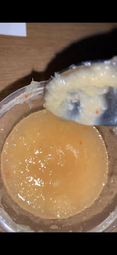 Secondly I watched Georgina pick something out of the sour cream with the spoon hit the spoon on the bin allowing the spoon to touch the top of the items in the bin and then place the spoon back into the sour cream....Disgusting!.