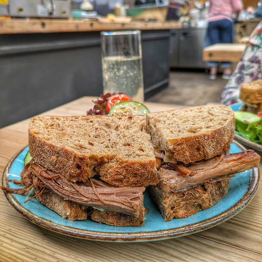 Here in Lyme Regis to celebrate birthday for 4 days with my partner. Looked at few different websites for breakfast recommendations and The Mill Bakery was mentioned as a must try. The place is rather beautiful, great first impressions. We ordered Veggie breakfast and smoked salmon with scrambled eggs on toast. I wanted to switch my poached egg for scrambled but was told they don’t do swaps. I asked if I can pay extra for side of scrambled eggs again no, with no explanation. I mean scrambled eggs is part of several dishes, and actually it is part of our order! I didn’t want to be confrontational and ask “why” so I don’t know the reason. I can only assume it’s the chefs being completely rigid in how things are served, and no changes under any circumstances. The food came very quickly, but our toasts were cold and rock hard, we could not cut through with knife. We sat in front of the pass so we saw that chef was batch cooking toasts then resting on the board waiting for orders. What is the purpose of this? It saves next to no time. I get certain things like poached eggs, beans etc are batch cooked and then heated by Bain Marie during service, that’s ok as it doesn’t interfere too much with the freshness. The chef was also handling fish, raw meat, salad, herbs and bread. In an open kitchen like this you have to wash your hands between handling different ingredients. We both have worked in the hospitality industry before, I was a chef and my partner front of house for over 20 years. I hate hiding behind the screen and leaving scathing reviews but I definitely will not return to Town...
