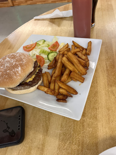 The interior was confusing , as it was many stores and random thing . Great concept , bad execution . The food was awful . The burger was slimy / soft and the texture was terrible . I know that the quality of the meat was poor by taste and lack of chew . The chips were also chewy , not crunchy and also way over cooked . Hot dog was a hot dog .. canât moan really but supposed to be âjumboâ and it was very small . We left unsatisfied and ate elsewhere .