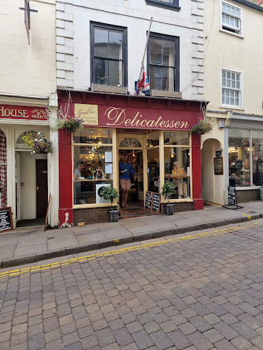 This is a deli that is absolutely true to the term. Truffles offers a great combination of off the shelve, fresh counter, and freshly prepared produce, while also balancing pride in local and regional products with well chosen international delights. The savoury baked goods are sure to tempt and the selection of cheeses is nicely diverse yet not overwhelming. At the back fresh sandwiches and salads are made to order and offer great quality for a packed lunch or picknick. There is also an interesting selection of regional gins and other distillates next to a wide range of ciders and perries. We didn't try the homemade cakes on this occasion, but again expectations were exceeded in variety and they looked appetising if suitably rustic. Very friendly staff clearly enjoyed their trade, which is immediately infectious. When it came to the bill for our picknick (with added bits), we were taken aback a bit by what it cost us. However, this perhaps says as much about our lack of self-constraint as it does about the slightly premium pricing. The quality still...