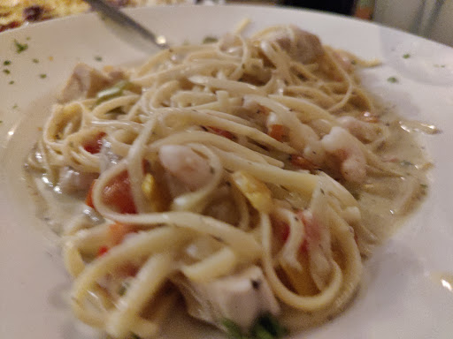 Most of our party got bruschetta which looked miserable. Served hot, not fresh at all and draped in a blanket of melted cheese? Weird.
