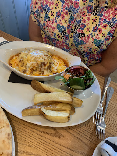 Read moreFood was average - king prawns in slightly spicy tomato sauce served with roasted new potatoes and three veg! Like a Sunday roast without meat. Seafood linguine looked and tasted very watery as if all the seafood had been boiled instead of cooked in a frying pan, mainly mussels and white fish with a few overdone shrimps. Margarita Pizza was mainly base with very little tomato and cheese. Starters were more appetising, smoked salmon and terrine were good. Goats Cheese and Black Pudding was tasty. Older waiter was quite miserable, while the younger one was very pleasant. The atmosphere was very flat with few people in and no background music. More like a midweek afternoon rather...