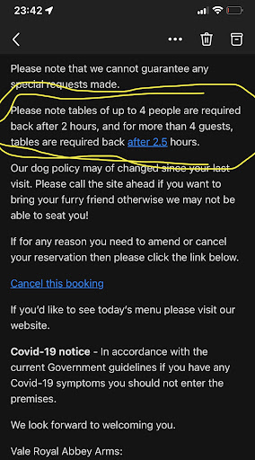 I complained at the bar to a helpful waitress, clearly the manager was scared to approach us as he was seen sneaking around the entrance peeking in to the snug room, where its quite clear you get forgotten about by the staff if you are unlucky enough to sit there.