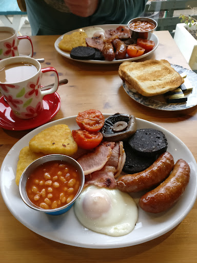The breakfast we had here was one of the best we've ever had. Although on first looks the prices seem on the higher side, don't let that put you off, the price you pay is well worth it for what you get. The quality of the produce and meats was awesome, all the items were really well prepared/cooked and the quantity of the large breakfast was more than enough to fill us both up until dinner time. Another great thing... The beans come in their own little dish, so the bean sauce doesn't go over everything else on your plate. The tea we had came in a large mug and was also very tasty and brewed well, and all the other drinks I saw going out to other tables looked really nice and generously portioned too. The toasted teacake being enjoyed on one of the neighboring tables was huge and looked delicious. The other thing which made visiting here so enjoyable was how lovely and happy all the people who work here are. From the second you walk in you're made to feel welcome and service was excellent. We will definitely come...