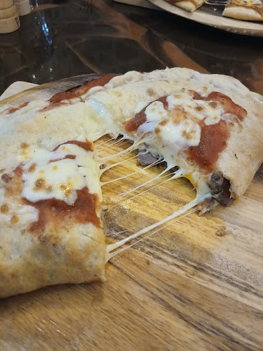 My calzone arrived, and it was stunning. Absolutely delicious. Packed with meat and wonderfully stringy mozzarella. Excellent cheese pull of over 1 foot.
