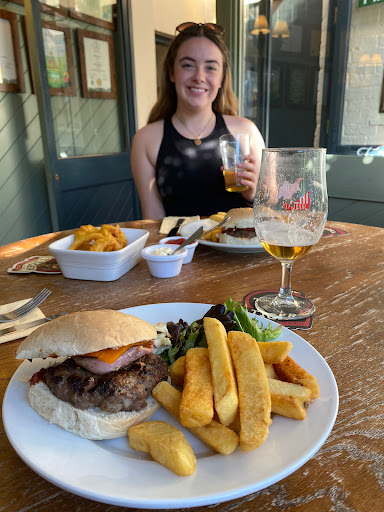Read moreNice pub to visit sat out in the garden which is very beautiful and full of pretty flowers pink purple and white .Lovely shrubs and very pleasant to sit in,it has a very English cottage garden feel and the the view of the church steeple makes a stunning feature of interest to look at and take photos. The surroundings are old stone buildings of character and are picturesque. There were also pretty lights and English bunting that gave it a party happy feel. If you like playing pub bowls there is a section for that to . It is dog friendly and the family in front of us had four lovely dogs that were having a nice time and were given bowls of water to drink from and had supper with their owners . They tucked into their meal and appeared to enjoy it . We just had drinks as we had a pre booking at a restaurant but will definitely try it...