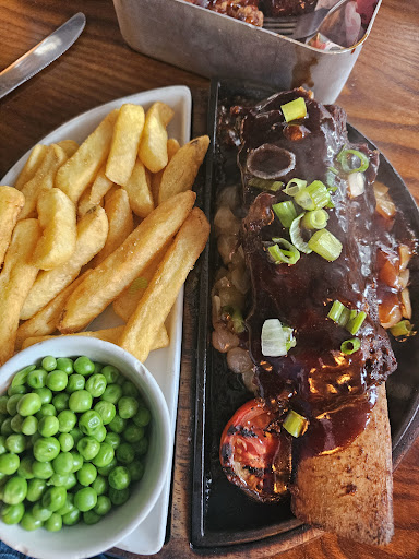 Original first visit. Not a good experience. Wife & I popped in at 7pm ish Sunday. On first impression it seemed ok, then we saw the mess under tables and on the floor. Chips, napkins and bits of paper everywhere. So got in sat down selected food n drinks and off to the bar I went. There was just 2 behind the bar and around 8 adults trying as well as getting drinks. The problem was it took HALF an hour before I got seen. Ordered food ok then asked how much the gins were to a don't know. So I asked her to look up the price of a double, so a Bombay came in at 5.50. Now next to the till was a board that said choose gin, choose garnish (lime I said) and mixer. Didn't have fever tree light so schweps it was. Turned out she put lime cordial in and it was a cocktail that came in at nearly 8 quid. The food was okish, wife had a med rare rump which was overcooked but tasty. I had the big medium rib eye which was a bit chewy but cooked ok. It came with Mac cheese which was anemic. Not grated cheese grilled on top. Chips were Luke warm and rubbery. One guest beer on tap that was zingy, wife said pipes hadn't been cleaned but too late to do anything about it. Will we be...