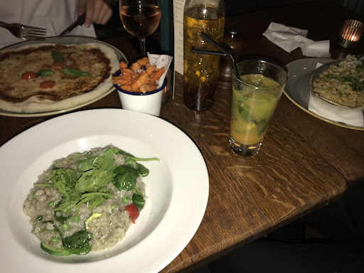 Mains arrived at 17:23 - Personally I feel there should be more time between the starter and main coming out. I ordered the Calzone which was served with salad and a good dressing, tasted like Caesar dressing. Empty glasses were not cleared when second round of drinks arrived. The food was really good and full of flavour. 5/5
