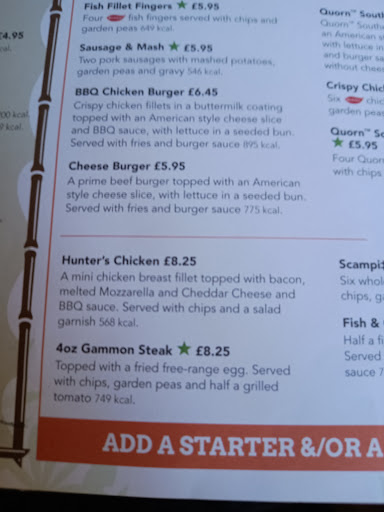 Β Β Β Read moreReally lovely country style pub. Have been here many times in the past and enjoyed ourselves. Haven't been for a while so thought we would go here for a change of scenery. I was quite shocked how much the prices for food have increased - considering the portion sizes it arrived as. I didn't get pictures of all our food, my friend got the salt and chilli chicken kebab and fries - hers looked amazing and a relatively good portion (cost Β£13.50). I had adults hunters chicken which came with chips, 2 onion rings, half a grilled tomato and a tiny bit of rocket, I thought was slightly overpriced at Β£12.29. We were most shocked at my daughter meal, she went for the 'bigger appetite' hunters chicken. As pictured it was just a hunters style breast of chicken, maybe 10 chips and 2 tiny spriggs of rocket on top - although it said on the menu a salad garnish. This cost Β£8.25! Which I thought was way overpriced for the portion, in comparison to other places in regards to 'bigger appetite' child meals.. this was definitely one of the smallest portions I've seen. Was quite disappointed it didn't even come with peas or some other extra that is healthy. We did order side dishes of halloumi sticks - which were honestly the best I've ever had. Onions rings - also wonderful and garlic bread which unfortunately was quite overcooked. The pub itself is lovely, lots of character, open fire for those colder months, seating outside at the front and back which is awesome. Plenty of parking as well.