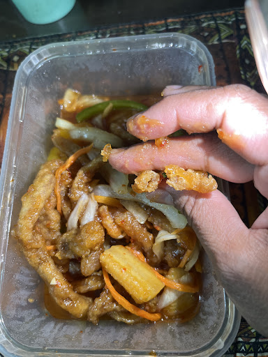 Delivery was early but food disappointing and a 'mixed bag'. Food was piping hot though so that was a plus! King prawn egg fu yung was very good, chicken chow mein short on flavour and bean sprouts. Prawn crackers (free on our order over ÂŁ16) were good. Pineapple fritters (3) were really bad and the worst I've ever had. The pineapple was wafer thin, like one ring had been sliced in three to go between the three fritter portion. 90% batter! .....I left most of it! Banana fritter DID have some banana inside but totally tasteless. Overall, probably wouldn't...