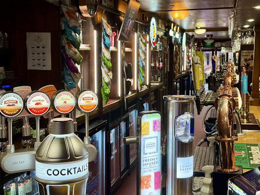 Read moreThe King & Queen on Marlborough Place in Brighton is a traditional public house built on the foundations of a twelfth century farmhouse serving coffee, beers and cocktails with various specials, local, wider domestic and imported. They also have a menu of great looking pub fare, although I didnât sample their wares. It has been rebuilt a couple of times over the years and opened in its current form in the 1920s. The interior decor is where old meets new with traditional stained glass, coats of arms, leather couches, low and high top tables and a well stocked bar area. Thereâs also a more modern Pit Stop area up a rounded stair overlooking the main pub floor. The area is spacious and comfortable with several televisions playing football matches and chill musical ambiance. Free high-speed WiFi is easily available with the network name and password on easily-readable signs throughout the pub. The bartenders are attentive and always ready to answer your questions, make recommendations, and tell you the local history, whether about local brewery Harveyâs in Lewes, or the evolution of the grounds and buildings. There are also several gaming machines, a pinball, and a pool table. If youâre looking for a historic pub to relax and recharge, this is the...