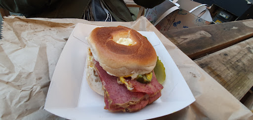 Read moreCalled in here not long before closing, so could only have a takeaway, but chose to sit outside and enjoy our bagels whilst they were just freshly made. Ordered a salt beef, pickle and mustard bagel for my partner. Tasted the salt beef, and it literally just melted in my mouth. Add to that the slight taste of dill pickle, and I almost regretted my choice. I chose a sausage and bacon bagel. There was enough bacon in there to feed a family, but, lightly salted, crispy and hot, the bacon was perfect. Under the bacon was 2 or 3 sausages (had to guessl due to the amount of bacon present). Combined together, this bagel came a very close 2nd to the salt beef bagel. Highly...