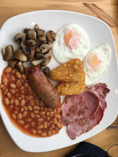 Funnily enough I had walked past this cafe several times thinking it was a health food shop until I saw a favourable review on social media. Today I stopped in to try the Full English Breakfast. Its a very nicely decorated cafe with decent furniture and friendly staff. A good start. The menu is very healthy as opposed to the 'traditional' greasy spoon but that's no bad thing. The coffee was good, a nice flavour with just a hint of bitterness although perhaps a little small in size.I also chose to have a healthy juice drink - I can't recall exactly what was in it but it was much better than I expected. The main event was the fry up and I wasn't disappointed. I've had fry up's all over the world and while this wasn't the best - that award goes to a cafe in Banff Canada - it was far from shabby. The fried eggs were cooked to perfection, no runny white and the yolks with just a hint of firmness. The mushrooms were good too while the baked beans were just baked beans. The hash browns were crispy without being greasy or mushy. The sausage was the real highlight - a Cumberland style with enough pepperiness and a nice amount of porky salty fatness. And it was cooked just right so that the skin gave out that little ripping sound when cut. Lovely! The negatives - not that they were really negative - were the bacon which didn't have much flavour or texture and the toast which was a pappy white bread. I would suggest a better quality bacon - maybe streaky - cooked a bit crisper and a perhaps more robust bread such as a seeded or crusty bloomer. All in all, it was a decent breakfast priced at just £6.95. I honestly would have paid more especially with different bacon and bread. Well worth a visit and I shall return especially for...