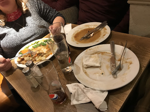 Read moreAlthough we have been to this place many times, on this our latest trip we were very disappointed, the place itself was quiet the service left a lot to be desired!. There was only 2x meats on offer and not much of that left! The vegetable selection was dire, very little available and what was there was baked up Bearing in mind this was around 8.30pm. The guy behind the carving counter was rude and arrogant and really couldn't be bothered about the poor selection on show. However there was a foreign female waitress who listened to our concerns and apologised. Then to add insult to injury we were basically asked to finish up and leave just before 10pm, as we were the only customers left in the place. We were not asked if we wanted a dessert at any point. We visit quite a few Toby's and on a regular basis, however I think we will give this one a wide birth in the future. Update! I thought we would give this place one last chance!, that said "never again". We were seated straight away (right next to screaming uncontrolled kids). We joined the queue for the carvery, in front of me were 3 ( mid to late teens) girls led by an older female (mother?) The older lady ordered 2 x child's plates (that were on offer at the time at £1 each), she was followed by the 3 x girls all chose the kids plate at £1 each? The carver loaded the plates with there chosen meats with a lot of male flirting and banter!, then it was my turn, I ask for a regular plate (a large male but not obese) it ask for a mixture of the 4 x meats, what I got was not enough to feed a small child, a few people in the queue questioned my megree portion, I also mentioned this, the carver bit back sarcastically and said that's all I was getting and the portions were done by weight??. I replied really, i didn't see you weigh it? He didn't respond and moved on to speak to my wife behind me, I added that I wasn't happy and I would complain, he ignored me? As i got to the end of the counter I came across the manager who also stated the weight issue. I responded by the fact that the 4 people who were in front of me were given a lot more than I was given but only paid £1 each?? And i was paying full price?? She offered me an additional 1 x slice of any 1 meat ?? Wow I thought!, still not happy we sat down and ate what we had, ironically next to the lady who ordered 2 x child's meals at £1 each, who now was tucking into the said 2 plates, now tipped onto 1 plate in front of her. After we finished the manager came over and asked if we would like a dessert?, i replied that the evening had been ruined for me and I was ready to leave and I would be complaining. To which she replied that it would be pointless as the complaint whould come through to her!, i responded "no it wouldn't " as i was intending to complain on "trust pilot" and "Google". Suddenly her attitude changed and we were told we wouldn't have to pay for the meals only the drinks!, nice try, but too little too late I'm afraid. I won't be setting foot in this place again and certainly wouldn't recommend...
