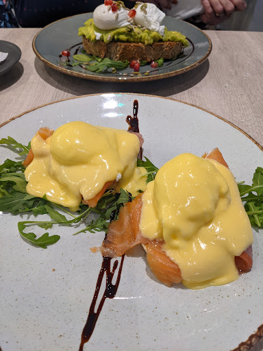 Read moreEnjoyed a really nice and substantial meal off their lunch menu. My wife had their "posh kebab" (chicken in a home-made crispy coating in a naan with salad and red cabbage something or other and sweet chilli sauce) and I had their "smash burger" (a clearly home made pattie with American cheese and usual salad/pickle and chef's own "bacon jam"!!). The portions were excellent and the fries were really nicely seasoned with salt and... I dunno... something green. The features were delicious. The "bacon jam" was right up my street but was perhaps so sweet as to not suit all tastes. I'd go back for more. Coffees were delicious and washed down the cake (white chocolate and raspberry and an almond and cherry slice) nicely, even though they were so light and moist as to not need washing down. Staff were really chatty and happy, including the owner who is proud of his Italian heritage.