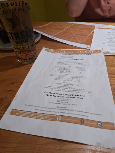 Ā Ā Ā Read moreBooked a pre Christmas meal for my partner and I, never had tapas so a new experience for us both went well armed with cash looking forward to the experience. Arrived half an hour early although the table was ready we had a drink in the bar. First impressions was a it was a very nice place. Went to the table 15 mins early the waitress explained the tapas menu and took our order we ordered 6 dishes and some bread as a bit of a starter, so far so good. 55 mins to an hour later nothing not even the bread others that had been seated after us were tucking in to their food. After raising our concerns with a member of staff the girl who took our order came over and claimed the kitchen hadn't received our order. How ? Not a glitch in the system because everyone else were getting their orders. She said the order could be resent and the food would be out in 15 mins, 6 dishes in 15 mins obviously not prepared fresh to order. We didn't stay , they didn't ask us to pay for the drinks. Not a good experience very poor service and an hour or more of waiting around. We can't review the food because we never got any.We won't return. On the plus side we had a nice steak at the Harrington arms in Sawley with great service. We will get to try Tapas but not Esquina there is a new place in Long Eaton we will...