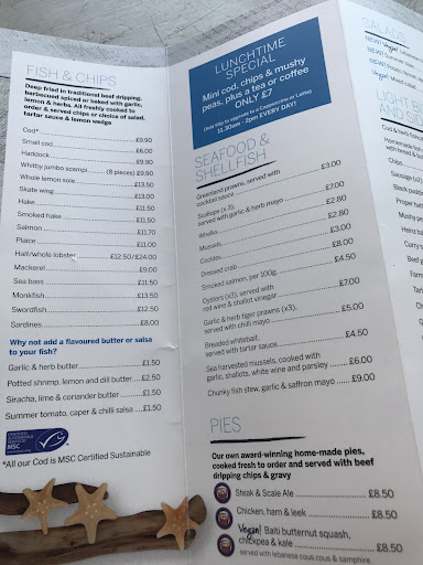 Read moreAbsolutely amazing... we have now tried all 3 shops and this one did not fail us. The freshness of the fish and the thin light crispy batter omg so yum! I tried the cod then plaice and you can clearly taste the different and the freshness in both of them. Although we came here for the monk fish but they didn’t have it today along with few others. Oysters were so so small, whelks not the big one we expected and was a little sandy, the tarter sauce tasted a bit off so we stop eating that.