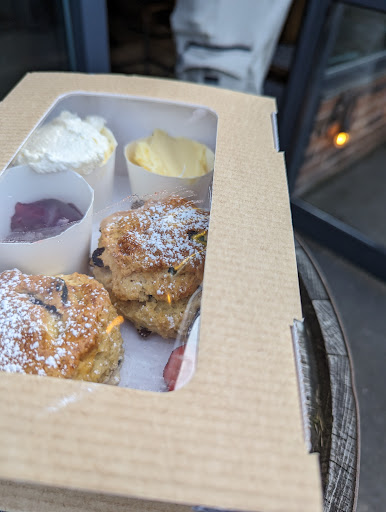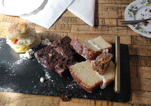 Then, the beautiful, (what tasted like, home baked), scones with jam and cream, and cakes appeared on a slate platter. There were big slices of Victoria sponge, chocolate cake and much more!