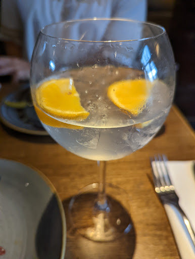 After being shown to our table the supervisor explained that Phoebe Would come and take our drink order. We asked if they would recommend any gins and Phoebe couldn't recommend any other than saying that they had a lot of gin. Our dinner guest who had been before suggested the blood orange Gin so that's what I ordered.