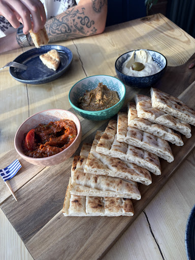 DAKTYLOS - earthy, hot and spicy dip. Delicious. A novel flavour profile for me. Very enjoyable. Pitas were soft.