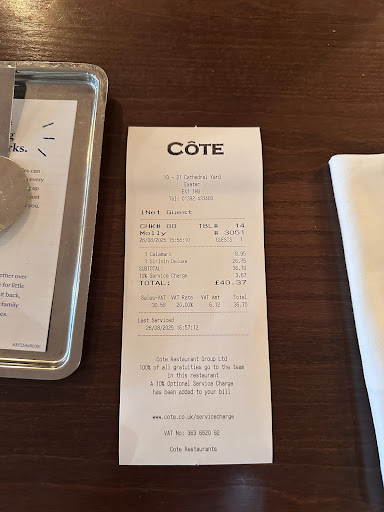 Read moreI don’t know who’s running Côte Brasserie these days, but clearly the soul has left the building — probably chased out by an accountant with a stopwatch and a bag of frozen chips.