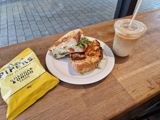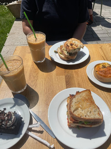 My partner and I ordered 2 sandwiches, a quiche, a cake and two iced lattes. The ham and cheese one was lovely, I wasnt a fan of the leeks though but still 8.4/10. The halloumi sando was bloody lovely, I give it a 8.8/10 but my partner found it a bit too sweet so she said 7/10. I found the sandos crunchy and good texture, my partner felt they were a bit soggy. So bit contradictory really. The pesto and ham quiche was bloody incredible, easily 9.4/10. The orea cake was 9.2/10. Coffees were alright too. Nice location, sat outside in the sun. Be careful of birds stealing your sandos. Really friendly staff, complimented my partners top and...