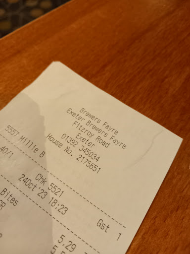 Read moreBooked a table at Exeter brewers fayre, we've eaten at many other brewers fayre before and quite like it. However, the Service was fairly questionable from the start. We arrived at 16.05 approx after sorting out car parking. Walked in to a practically empty restaurant. Went up to the bar. We were told, we're quiet so sit anywhere, so we did and then went up to the bar and waited a fairly long time to order which is fine.. We ordered 4 plates and waited. One plate came out, followed by two.. a smothered chicken and mixed grill. Still waiting for one.. and then we realised no chips on the smothered chicken. I questioned JOSH, the manager, where the other plates were and why we have no chips. He said 'chips were an option' and I had not specified. I said well it's on the menu and he argued but then eventually after I showed him the menu he went and got some chips for my wife. At this point we are still waiting for a second mixed grill. I went up again and asked a chef, who'd just come out of the kitchen, who went and checked. He came rushing out a minute later and apologised for the mess up. We waited a further 20 minutes ISH and josh bought it out and put it down. We asked if we were due anything as we'd all had to wait etc and my food had gone cold by now etc. to which he said "it was just held up in the kitchen, I can't exactly just give out discounts like that" and he then nonchalantly walks away, despite the fact that one of the chefs had just apologised for the mess up and said they had missed the ticket.