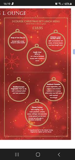 Read moreWent for lunch. There was a Christmas menu however if you want the roast turkey you have to have a starter else they won't let you have the roast. Had the seafood chowder instead. Was pretty bland and didn't seem to have much seafood but plenty of veg. One starter, two chowder and two drinks were £44. Not good value considering it didn't taste like chowder. To add insult to injury the turkey roast if you have it has a £2 surcharge in small print at the bottom of the menu which is a bit off given its really the only Christmas thing on the Christmas menu. £21 for a soup and turkey roast on the lunch menu seems very OTT to me but then I didn't have the turkey and maybe its amazing. Wouldn't go again for the Christmas menu but have enjoyed lunch here in the past. Staff are very good and so is...