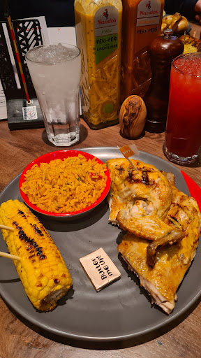 Read moreFood is good, as per for Nandos, and always quick. Inconsistency in staff standards though. I've been 3 times in the past 5 months (so it's not put me off) but they seem off par with some of the basics I'd expect. Only 1 out of 3 times we got a check back on our food. 2 out of 3 times we got our full order of food (Olives were forgotten last time). 2 out of 3 times we got our drink glasses brought over (forgotten until we asked for them when our food arrived). You don't go to Nandos for the service, I know. But if they get these basics sorted then it would be more seamless, and probably cover their backs too (regarding checkbacks). Most people order on the app anyway so that reduces the time they have to spend with customers, but I'm sure there's still loads to do that they are having to juggle, but for some reason there's not much urgency or attentiveness - I don't know if they have delegated sections for floor staff but it comes across disorganised and may just need to be managed.