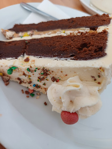 Love this coffee shop/cafe so much. The staff are so friendly and welcoming, I feel like I've known them for years. Plus the food is delicious, fresh and nice size portions. Their nachos, panini's, jackets... everything is delicious and very reasonably priced compared to a lot of places these days. As for the cake... yum! And most of the cakes are made by the coffee shop too-even better. Also they are babie/kid friendly. They have plenty of highchairs, a kids menu as well as a dedicated corner filled with toys, books and puzzles. I have been going since my baby was very little and breastfeeding is welcomed, they even gave me a glass of water...