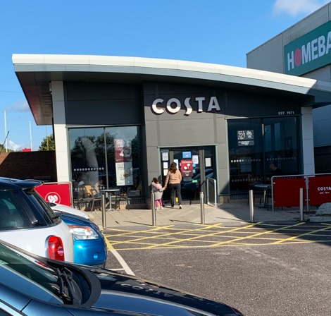 Ā Ā Ā Read moreI've never yet found a Costa I didn't like, this one is in what at first sight seems a slightly oddball place, in the corner of a small out of town shopping estate. However, it is within walking distance of a major naval training base. Not at all a dumb location. Fully up to usual Costa standards, comfortable, but not too expensive, good coffee. Now with M&S snacks, though I have not yet...