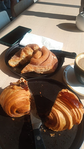 Firstly, the pastries were very good. The blackcurrant cruffin was delicious — lovely balance of flavors and very good laminated pastry. The morning bun was ok, the dough was nice as was the cinnamon and orange flavor. However, it was smothered in such a thick crust of sugar I could barely taste anything else. Unfortunately, the service let us down quite a bit as well. We waited over 15 minutes for a cappuccino and a flat white despite the shop not being overly busy. Eventually we simply asked for the coffees to go because we’d already finished our pastries. The coffee was very nice once we got them though. Lastly, there was no indication of what the menu items were or allergen information. Some little tags on the front of the pastry case with the names of the menu items and their ingredients/components would go a long way. Both for informing customer decisions and speeding along the line. FOH would no longer need to run through the menu verbally with each customer. Overall, a decent experience but it could have been better. I’ll still speak highly of the pastries but wouldn’t...