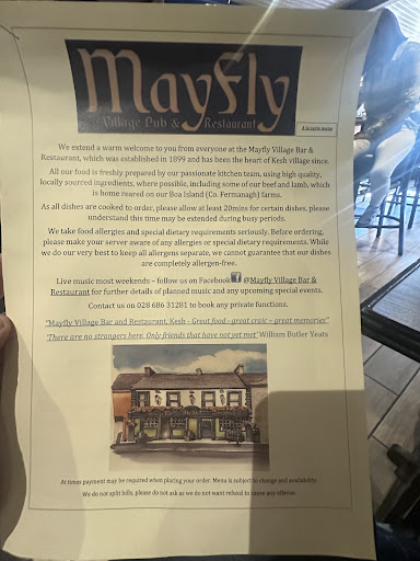 Read moreMy husband, daughter, her partner and myself called here after a Motorsport event in the vicinity, after ordering, we were told of a delay due to the number of people who had also called in after the event, we ordered, gammon n chips, 2x chicken goujons and a fish n chips, when out food arrived, it was absoultely lovely, tasty, fresh, well presented, good portions, the proprietor Gary wasnt afraid to get stuck in and help with the service and clearing up and spoke to ALL the customers in his dining room, which I thought was a lovely gesture, I would strongly recommend a visit to the Mayfly if in the area, I assure you, you won't be...