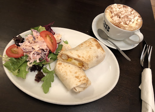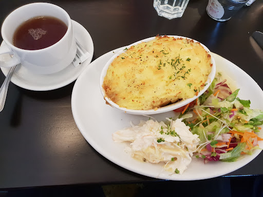 Read moreDay light robbery!!! 1 small quiche with one spoonful each of coleslaw, green salad and walford salad. A slice of so-called carrot cake, which was dry and tasteless, the frosting on top was more like runny icing and it had been sliced with a third missing. I had tea to drink and was charged £12:30...appalling! I watched one of the counter staff use a cloth to wipe all the crumbs and waste food, from the serving area behind the cakes, onto the floor and then use the same cloth to clean a dirty knife used for cutting cake, then she put it back to use again. In the mean time, 2 other staff walked through the food on the floor before it was eventually brushed up. I dread to think what happens in the kitchen we can't see....The staff are so...