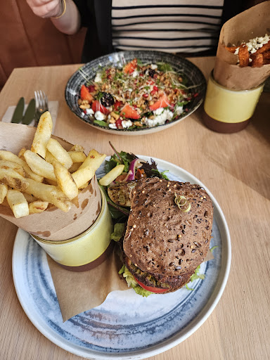 Read moreAbsolutely loved this place. V busy when we arrived, but we sat at the bar and had a drink. Watched the staff making elaborate and delicious looking cocktails, whilst chatting to us. Would happily have sat there all day, taking in the atmosphere. Lovely decor, reminded me of Havana. And loads of lovely details, down to the pretty teaspoons with our coffee. The food was so good too. Had the Marrakech salad - a colourful mix of falafel, hummus, quinoa, crispy kale, asparagus and tender stem broccoli, with a few raspberries, blueberries, strawberries and blackberries too. Superb! Also had the veggie muffin, the chicken soft tacos and some skinny fries and gochujang sweet potato fries. All of it was tasty, freshly prepared and served up by really personable staff. Would travel to eat here! We are already figuring out how to come back as we live 90 mins away! Great veggie options, many of which could be vegan...