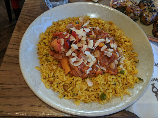 2 of us arrived for dinner on a Tuesday evening and were seated at a sticky table. The hummus and pitta starter arrived quickly. So quickly that the pitta fell onto the sticky table when plonked in front of us. Waitress simply walked away. Half of the pitta was stale on one dish. When I pointed out that half the bread was stale, the waitress' solution was to offer more bread.