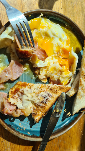 Quite a good cafe for brekkie. Bacon looked like it could do with a few more minutes but tasted ok. Not bad at all for a supermarket. Updated 6th August. Stopped off for a bit of brekkie... Used the app to try and be as quick as possible. Didn't really work as it took a long time to arrive considering it wasn't that busy. No dramas as we weren't too much of a rush. We'd ordered 2 build your own brekkies. My partner's looked and tasted great. 2 X black pudding, mushrooms and a fried slice. Mine however wasn't so good. 2 X fried eggs, 2 X toast, 1 x bacon, 2 X sausages. I'm not sure if they only have one size plate but it was piled on with no room to even attempt to arrange your toast. The server asked if we wanted any sauces so we opted for brown. He gave 2 and we asked for some more as we both wanted the brown sauce option. He causally took 2 more sachets from the cup they were kept in and tossed them down on the table as he walked away. Not what I'd expect from someone serving tables, even in a cafe. Apon trying to arrange the plate to be able to try and eat the food, it came to light a sausage had been left off the order. Back to the counter to be faced with the back of the server completely unaware I was waiting. No issue, I let him finish what he was doing. After he went to the kitchen and then noticed me, I managed to get another sausage ordered. Not even an apology for their mistake. The only bonus was my missing snag was delivered on another plate, which helped the logistical issues I had with the small plate issue earlier. Breakfast now ready! Or so I thought! The eggs were shocking. Undercooked with that slimy appearance that makes you heave a little. I really couldn't be arsed to go back up again. Managed to use some of the cooked parts of the eggs but in all it looked like just horrible. So, 2nd time going here. 1 time ok. This time was a shocker. My partner's brekkie was good. Mine was a car crash. Bacon...
