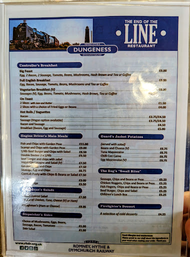 Read moreThe End of the Line Restaurant is a nice little cafe at the Dungeness station of the Romney, Hythe and Dymchurch Railway.