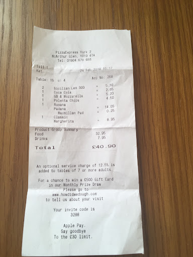 Read moreToday's food was lovely could not knock it. Member of staff serving us on the other hand not so great. I know it's all different now but she was quite abrupt when taking our order, then I asked about using my taste card or club individual card and was told no discounts available - which isn't displayed anywhere. So full price it is, that's fine! My son spilt his drink before we got our meal, soaking him, the table and causing a huge puddle on the floor. I wiped up what I could with napkins and when she came to serve our food mentioned the floor was wet and asked for him another juice - nothing was done about it, no juice, no floor cleaned up and no communication from her for the rest of our meal. Another staff member saw the mess before we left and sorted it. I paid online and left. Customer service is just as important as the...