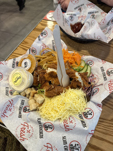Read moreWe tried Slim Chickens after hearing about it a few weeks ago. We were not disappointed. The food is not only generously portioned, but absolutely delicious too. My stepdaughter is usually embarrassed about taking leftovers home, but she was the one instigating it here by wrapping her chicken up in the greaseproof paper it came in. The restaurant is also very clean and pleasantly designed and the staff could not be more polite and helpful. I cannot think of a single negative aspect other than it would be nice for vegetarian products to have a "v" next to them to help show which products are truly vegetarian outside of the vegan tenders. That's a minor thing which isn't worth marking down for. We will be...