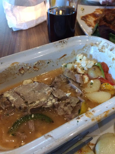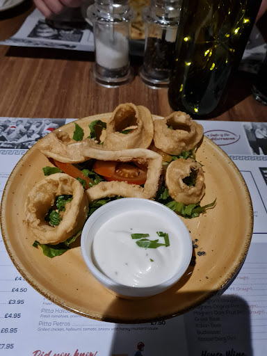 I got the stuffed vine leaves, a personal favourite, there was only 4 small parcels (about half the size of anywhere else) they were served with a single slice of tomato a single slice of cucumber and a dinner plate full of tzatziki.