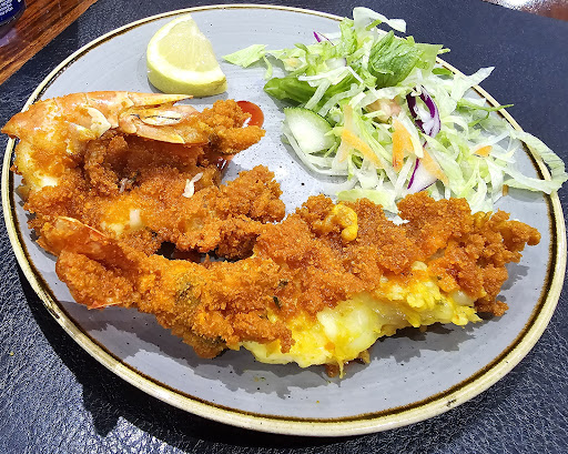 The food quality itself was inconsistent, some of the dishes like the onion bhajis were sublime, the prawn cocktail was laced with too much vinegar and below in the photo is supposed to be a "king prawn butterfly", having compared against how its made in other restuaraunts seems to have been made half hearted.