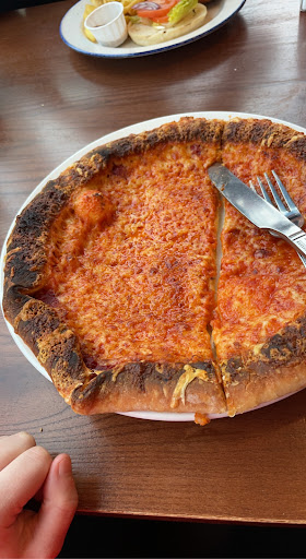 The food arrived, it was a busy day so our two adventurers had to wait a little longer, but in each others company it flew by. The food looked and smelled great. A burger worthy of a 9/10, the cheese sauce oozed out of the sides all over his curly fries. He was happy to see they stuck to his "No Tomato" request. Each bite was heavenly, he wished he had gotten two burgers after he wolfed the first down. The vegan option was sweet and sour crispy quorn which were described as "Kinda like the nuggets from McDonald's but made for vegans" The rice was, well rice. The adventurers left, happy and full.