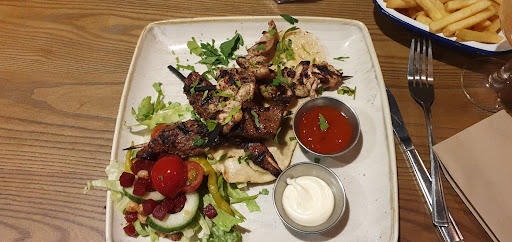 After choosing from a very poor menu, It took almost a full hour for 3 tiny overcooked/burnt chicken skewers with some garlic mayo, and 4 tiny halloumi fries to arrive to our table. While delays are always possible in a restaurant setting, especially on valentines, there was no communication & it did not seem that busy actually. Waitress then said the starters would be free.