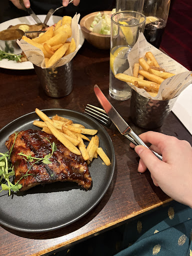 Our third and final visit was on Father's Day. This was poor. First of all, the tomahawk offer that they had available, and which was the whole reason we even booked it, had sold out the day before Fathers' Day. Disappointing start. Then it just got worse. The service was slow, things often didn't show up when promised (high chair, for example, for my daughter, showed up with her main course, as if somehow it wasn't needed for her starter), and we were left without drinks for our main courses. The burger from the kids' menu was dry and disgusting (which they took off the bill, but again, it would just have been better had it not been done poorly to begin with). The 'camembert' sharer starter was terrible. I am sure that the cheese they use says 'camembert' on the label, but it's the worst, cheapest camembert I think I have ever had the misfortune to taste. No strong flavour, as camembert should have, and a 'plastic cheese' like texture - not runny, as baked camembert usually is. The dirty burger was tasty but suffered from the same problem that so many burgers seem to suffer from - too much stuff shoved in the burger, resulting in a difficult-to-eat soup with a bun that disintegrated in-hand. This burger was topped with slices of fillet steak, for which I was asked whether I wanted them 'pink' or 'well done'. I of course chose pink (I'm not a heathen), but they didn't arrive pink, so I didn't see the point of being asked really. Finally, the dessert I chose - the banoffee pie - was topped with cheap tasting cream and, allegedly, 'dulce de leche'. As with the Camembert I am sure this caramel sauce said 'dulce de leche' on the packaging, but in my opinion, it did not taste like dulce de leche. It also had the banana on the side, rather than in the pie, which was just a bit weird imho.