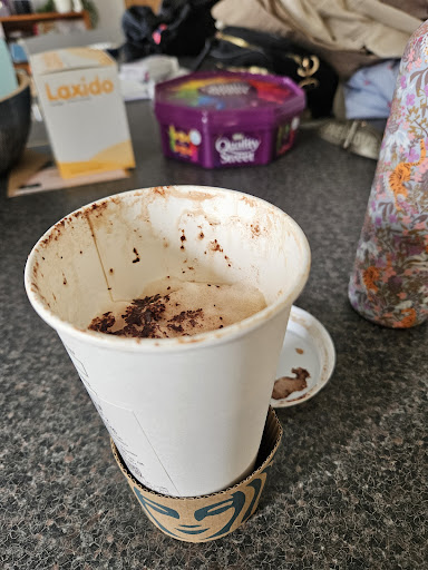 Read moreI popped in to get 2 frappes on a Thursday at 4pm. Figured it was hardly caffeine oâclock, so itâd be quiet. It wasnât. Fair enough, I expected to wait... it was a 20 minute wait. However while I waited I watched. One young member of staff paraded around exclaiming that she couldnât be bothered anymore, aimlessly moving stuff around. One guy made 3 drinks for 3 different customers all of which were wrong and dumped down the sink. The bins were overflowing in the kitchen area, it looked dirty and chaotic. Clearly nobody was in charge. I got one drink when Iâd ordered 2. When I asked where the other one was, miss âcanât be botheredâ told me, âthere is a queue mate!â No wonder there was a queue with two of the team being totally inept and counter productive. Appreciate weâre probably talking minimum wage here but at ÂŁ10 for two drinks itâs not that cheap and to be spoken to so disrespectfully was not helpful after a disproportionally long wait for two drinks. Surely a successful global chain can do...