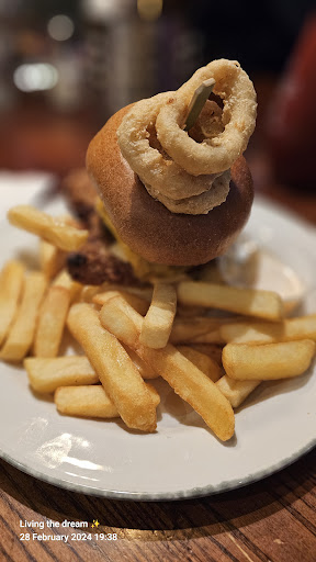 We had no acknowledgment from staff on arrival, the pub seemed quiet for 7pm. Tables were dirty and werenât cleared. We had to clear our own table to be seated. As a trained chef I was disappointed with the food that was presented to us. As a party of 6 all of our food was incorrect. We had: -Hunters chicken Nachos- the nachos were cold (just came out of the bag) the toppings were thrown on top of cold nachos resulting in the meal being cold. It was unpleasant to taste as it was overwhelming in BBQ sauce and hardly any cheese sauce. We ordered chilli heatwave Doritos and they were cool original. 5 oz and 8oz rump steaks- we ordered rare steaks and both came out as medium. We ordered 1 regular fries and 1 dirty fries and we received 2 dirty fries- which were very disappointing, the cheese sauce was cold and the toppings werenât consistent throughout our party and dumped on top like an after thought. They had forgotten the grilled tomatoes on both of our dishes. The portion sizes were off- only have 3 petit mushrooms on a plate is a joke. They had forgotten to bring our peppercorn sauces and we received halfway through eating our food. The sizzling plates were not hot either and the food went cold very quickly. Mixed grill- the fried egg was black and over cooked- not pleasant to eat and chips were cold. The burgers were worst. The worst burgers we have eaten ever. The cluckin hot stack- this order was forgotten and arrived too quickly after the waiter said it was forgotten which made us feel cautious about the cooking. The burger was thrown together and was incredibly greasy making it inedible. This was meant to be a spicy burger and due to the jalapeños not being present (as it states on the menu) it was glorified chicken burger that made the person feel unwell after eating it. I could have gotten a better burger from McDonaldâs at a cheaper price. The texture of the chicken was off- the chicken seemed rubbery like eating a flip flop. The burger disintegrating in her hands as she was eating it. The goodfellas burger- like the chicken burger these were thrown together as were horribly presented when they got to the table. We found out very quickly that one of the main components was missing- the tomato salsa. Itâs underwhelming as it was simply a cheeseburger but paid a lot more for what we received. The burger was dry and unpleasant to eat. They also had dirty fires which were very underwhelming as it was little amount cold cheese sauce dumped on fries. Onion rings were sad and soggy even an unpleasant colour to look at. We had a side of Mac and cheese which definitely came out of a microwave.