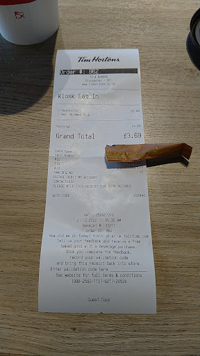 I finally popped my Tim Hortons cherry this week in Broughton. Our cravings after didn't stop! So on our way back to Devon, we stopped off in Gloucestershire! Gave us another 3 hours back, plus it was lunch time. It was pretty easy to find. Again, before we entered, greeted with the smell of fresh doughnuts and coffee, such a beautiful aroma, one that makes my wallet become lighter... Having tried the hot dog previously, it was time to try my speciality burgers. The premises were so spacious, airy and bright. Looks like a lovely place to dine. Looked very clean and even though it was lunch time, it was calm and not too many people were in. I picked the nacho chilli cheese burger meal, of course I got the maple latte, large as... its amazing. I decided to get a travel cup, as I have a child's bladder and didn't want to be caught short. I got another apple and caramel fritter, as I couldn't stop dreaming of them! They are out of this world! Waiting for my order with my friends (we ordered separately), my order number was called, I picked up my order, the server gave me the Chipotle mayo. I waited for a few seconds, the seconds turned to a minute. I approached the server again, asking for my travel cup, which I wasn't given. He just pointed to the display, didn't say a word. I asked, "do I just take one?". He looked at me confused and just nodded slowly. Not a lot of security towards the merchandise, anyone one could pick up the merch and the staff would be none the wiser, as they are all very preoccupied. I drop my food, drink and travel cup outside, with my friend, who was outside with her Corgi, Percy. I decided to get myself a Iced Lemon Cooler, as I loved the cherry flavour, we had previously. I go back to my friends that were still working. My partner was just waiting for her Latte. My order number was called, even though I was there for less than a minute. He tried to give me her latte. I told him it wasn't mine, but he insisted it was. My partner walks up asks if it's hers, looking confused, he hands it over. I ask, "where is mine" as after all... my number was called. He said, "its not ready yet.." looking at me like I was an inconvenience. I got my cooler in the end, it was time to tuck in. My goodness, the fries again, so flavourful, perfect temperature. With Chipotle mayo chef's kiss. The burger patty looked grey (almost a light greenish hue to it) I was a little put off, so took a little bite... my goodness, it was so so good. Despite the look, it was absolutely delicious! The sweet chilli was delicious, the right amount of zing and sweet. Beautifully flavoured and was prepared really well, still wish the patty didn't look off putting. I took my first sip of the Iced Lemon Cooler... it was one of the most amazing Iced drinks I have ever had! The tartness of the lemon and the hit of sweetness in the after taste. The most amazing understanding of Lemon flavours I have ever had. Probably up there with the maple latte for best drinks I have ever had. The outside seating area was nice, shaded and a good placement. Helped as we did have the dog with us. The shade was a god send as it was 34 centigrade. The apple and caramel fritter was again so nice. The food again was the saviour of the meal! It was prepared so nicely and the flavour are incomparable to other eateries! Can't be topped. However the service here was just not too welcoming. My partner went back to the till to get a French Vanilla coffee powder. Waited at the till for over 5 minutes, multiple people walking past, one even looking at her in a funny way. No one else was waiting for there food... so clearly wanting to be served. Its sad as the food is out of this world, its one I will recommend for years to come. Please just notice your customers, approach them in a friendly tone. If you mix up an order, just say that. Instead of looking at me like I made the mistake. I literally worked in the sector, I know what it's like. If any staff ever read this. I respect you a lot. Please just take notice, make us feel welcomed and give us a...